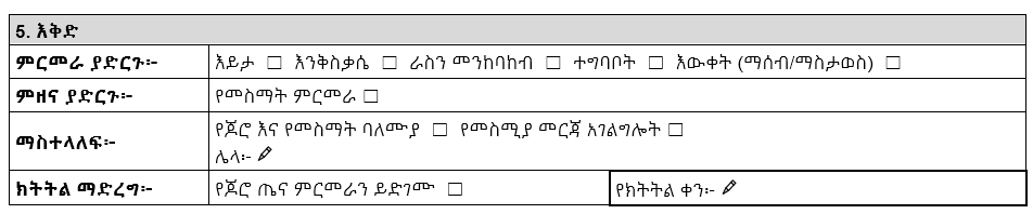 - አንድ ሰው ሌሎች ፍላጎቶች ሊኖሩት እና ወደ ሌላ የአገልግሎት ዓይነት ሪፈር በመደረግ ሊጠቀም ይችላል። ይህንን በቅጹ ላይ ይመዝግቡ።