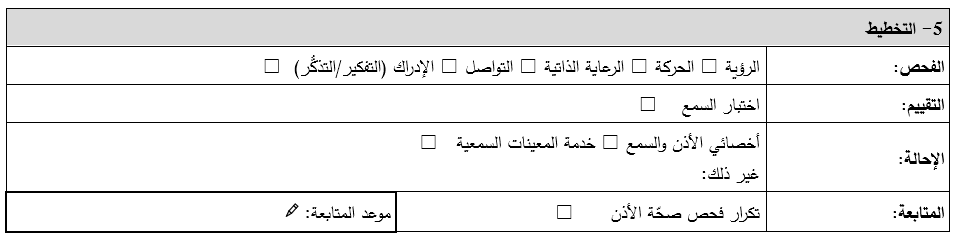 حدِّد ما إذا كان الشخص يعاني من صعوبة في مجالات أخرى، ومدى إمكانية استفادته من إجراء فحص لتزويده بمنتجات مساعِدة أخرى.