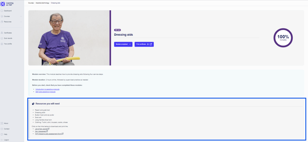 There are a set of resources provided for each module. This includes forms, supporting documents and videos for Learners.