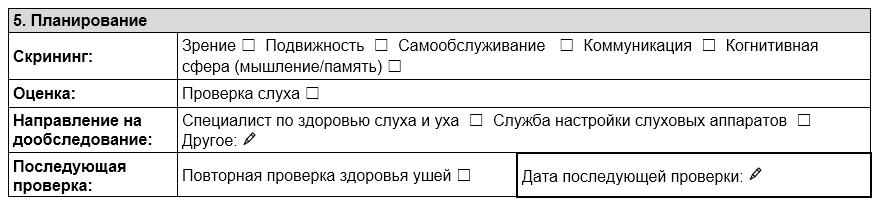 Заполните раздел "Планирование" в нижней части Формы для проведения скрининга