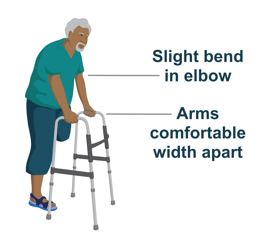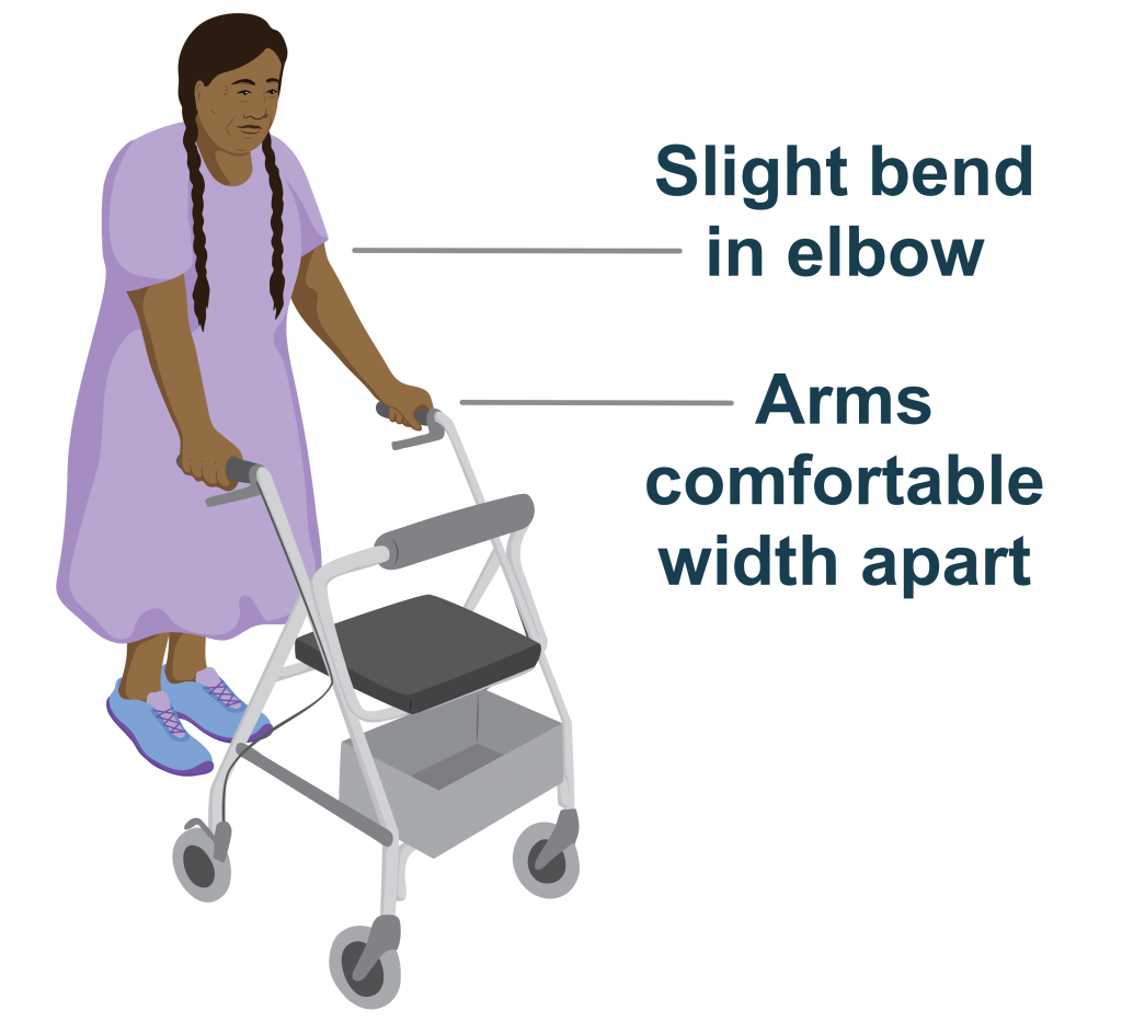 After adjusting a walking frame or rollator for a person, check it fits as follows: