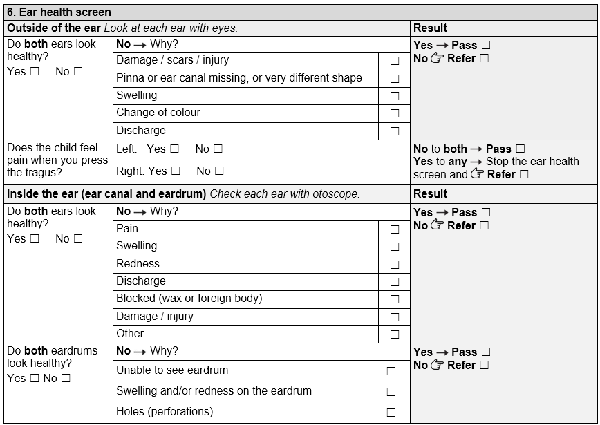 If it is not possible to complete any part of the hearing or ear health screen with a child, discuss need to Refer with parents.