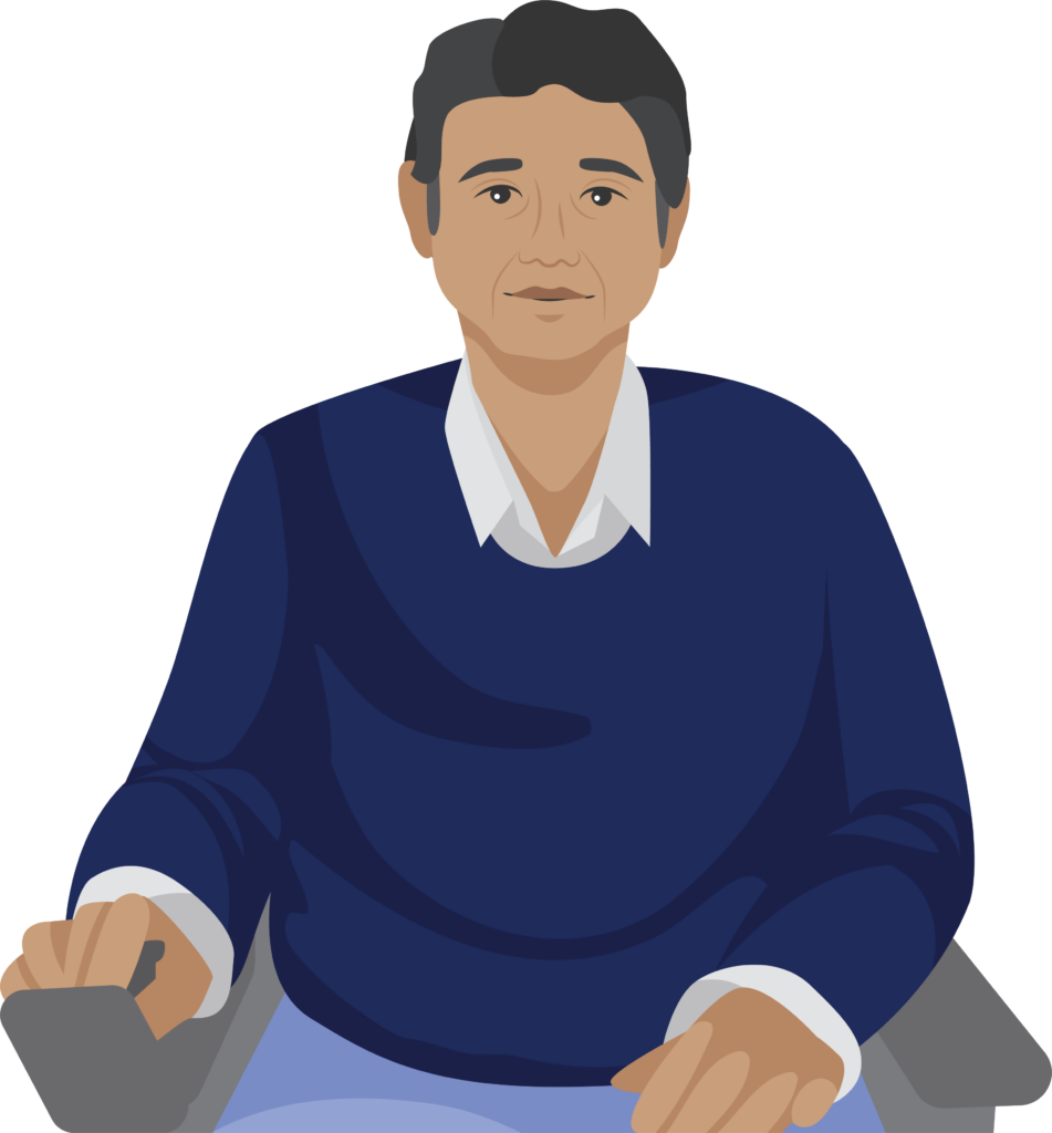 Pedro is 45 years old and works in a government office. He uses an electric wheelchair.