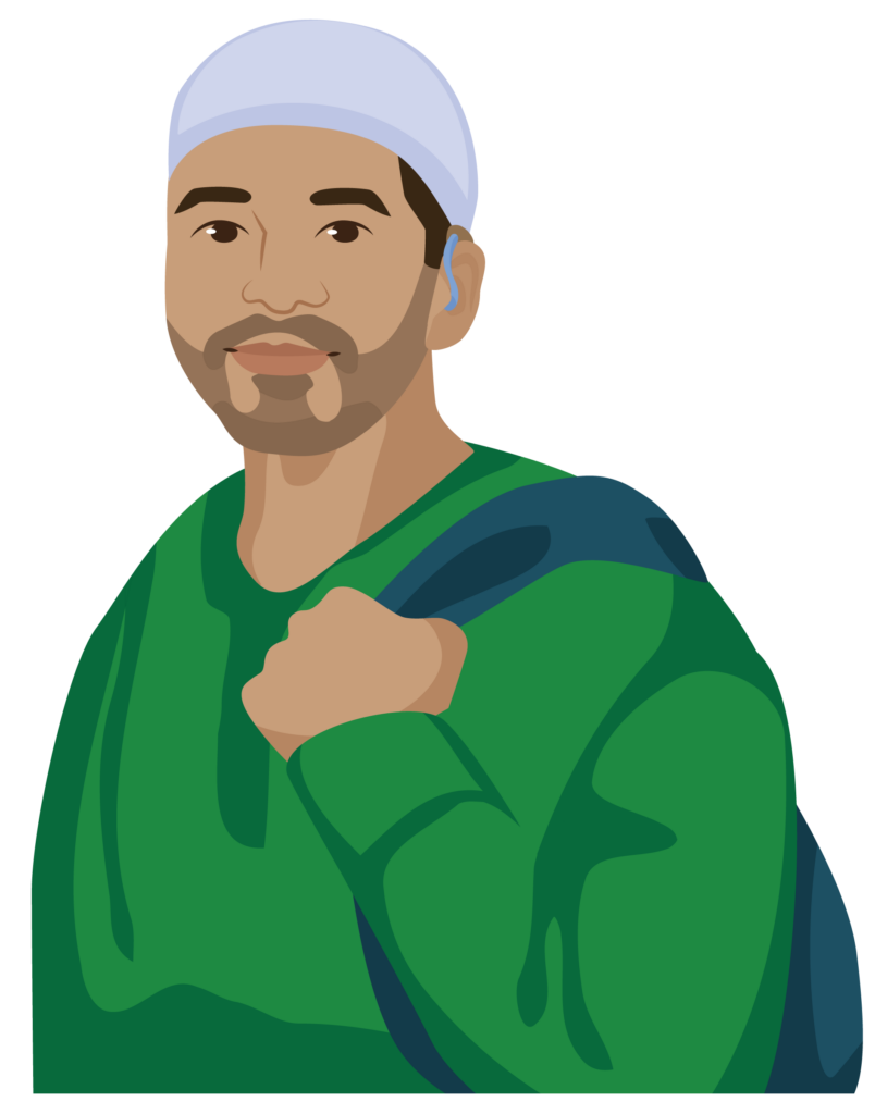 Mahmoud is 19 years old and studying at college. He has moderately severe hearing loss in both ears and wears hearing aids.