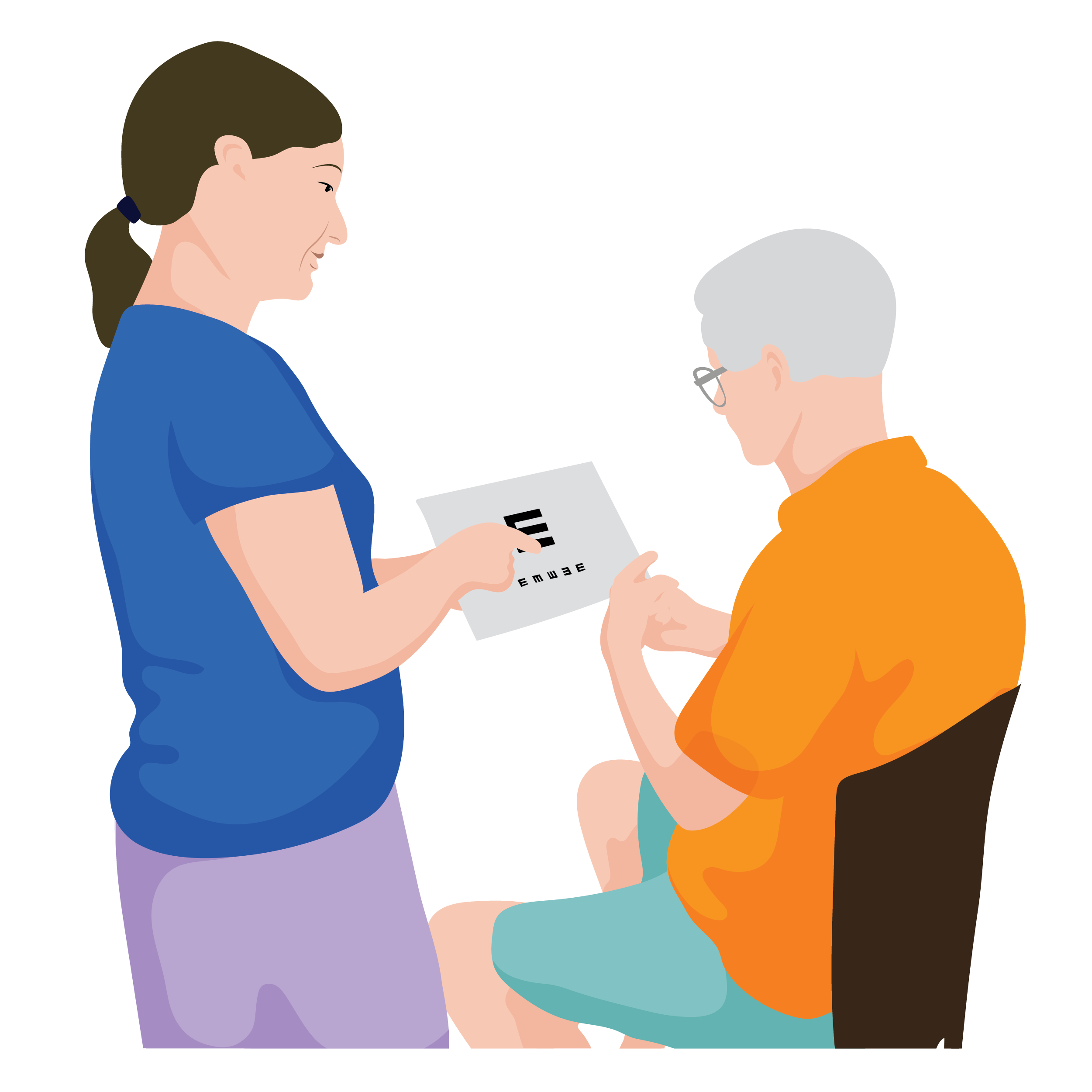 Ask the person to hold the E-Chart in front of them. If they cannot hold it easily, you can hold it for them.
