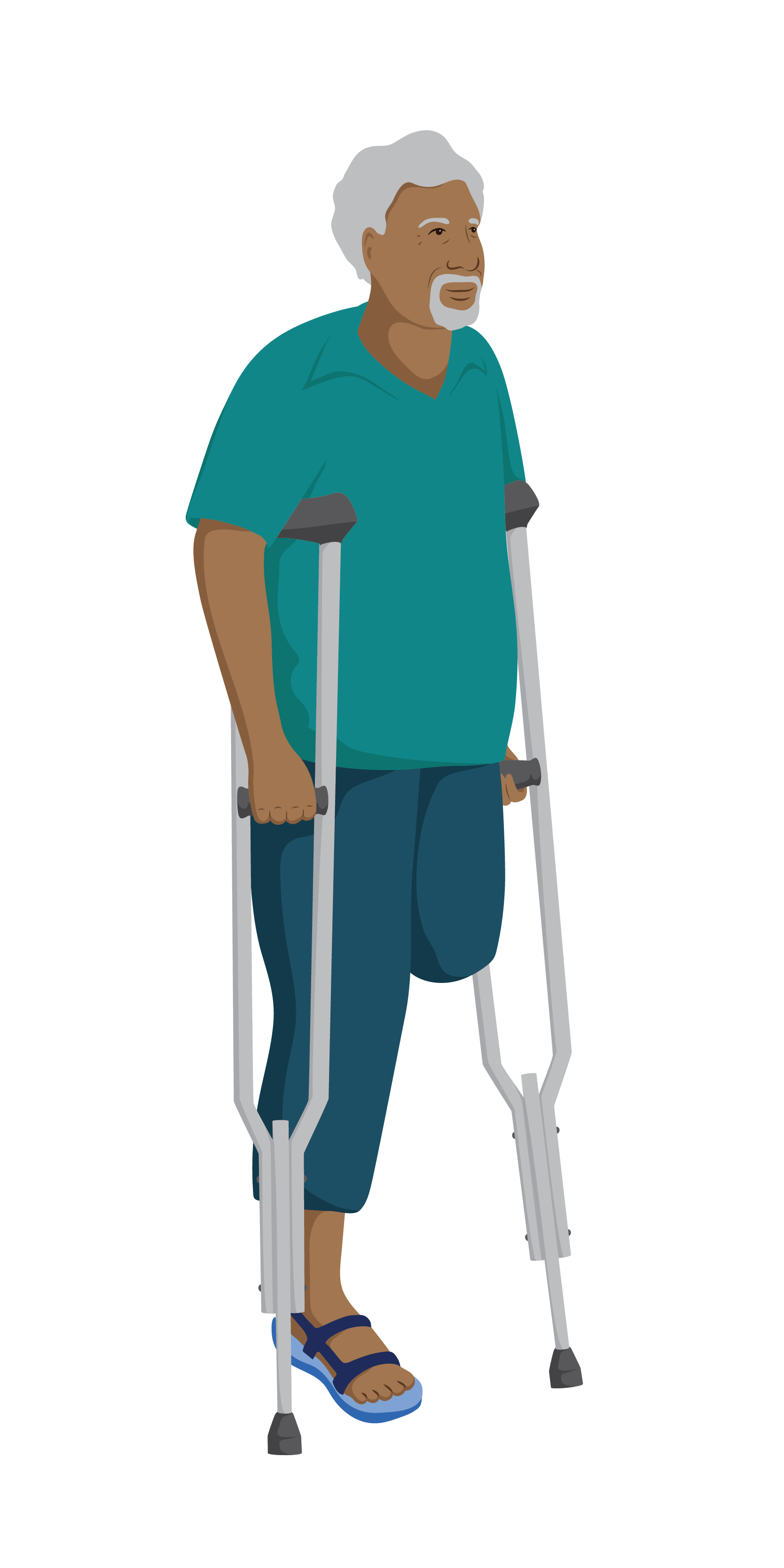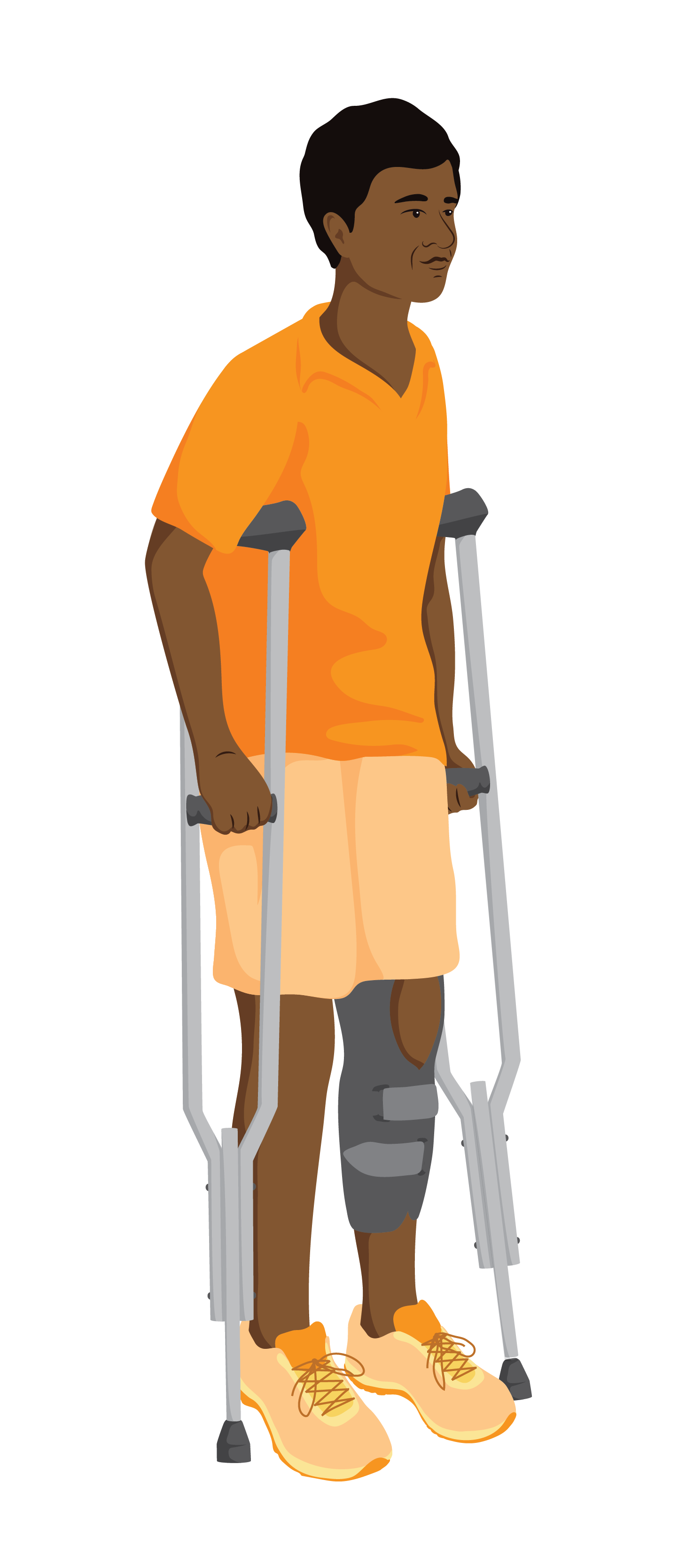 - Check that he is using the axilla crutches properly. If not, show him how to use them.